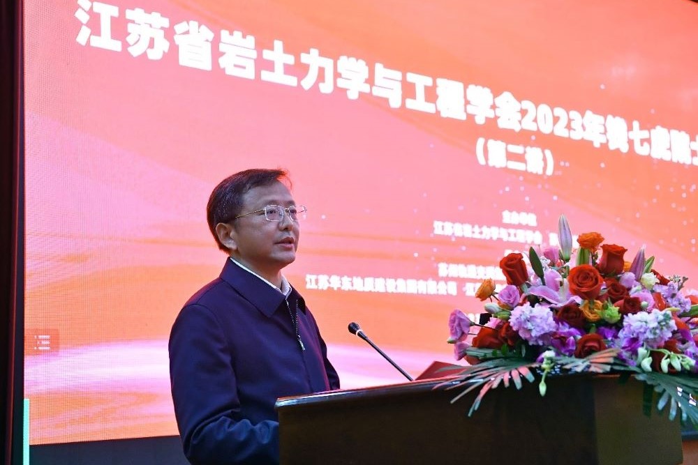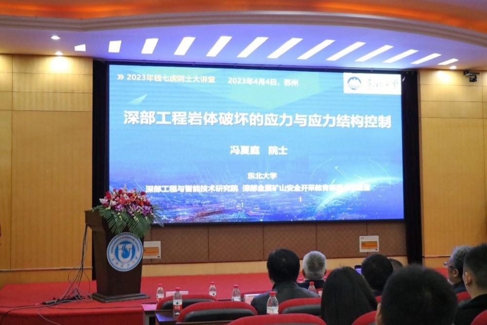 作者:吴迪 图片作者:张景文 来源:轻小说 发布日期:2023-04-06 浏览:次2023年4月4日上午,钱七虎院士大讲堂(第二讲)在苏州科技大学江枫校区建筑系馆二楼报告厅隆重举行,会议线上线下同步进行。本次“钱七虎院士大讲堂”是在江苏省科协的指导下,由江苏省岩土力学与工程学会、苏州科技大学主办,苏州轨道交通集团、江苏省地质工程勘察院、江苏华东地质建设集团有限公司、江苏省建苑岩土工程勘测有限公司、昆山市地下空间技术研究院承办的学术交流盛会。
