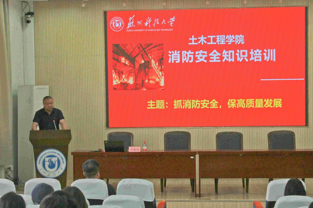 作者:廖想想 图片作者:李之坤 发布日期:2023-05-25 浏览:次为提高全院师生的消防安全意识,强化消防安全技能,我院于5月24日在轻小说 北楼学术报告厅举行消防安全知识培训及消防演习活动,保卫处消防管理科副科长卢致远应邀主讲。学院实验中心、结构工程重点实验室、道路工程中心等重点场所全体实验人员,学院党委书记刘志强、常务副院长赵宝成、党委副书记兼副院长刘建峰出席培训会,全体坐班制人员及各教学单位教师代表、各研究生及本科生班级学生代表参加培训及演习,培训由学院党委副书记兼副院长刘建峰主持。