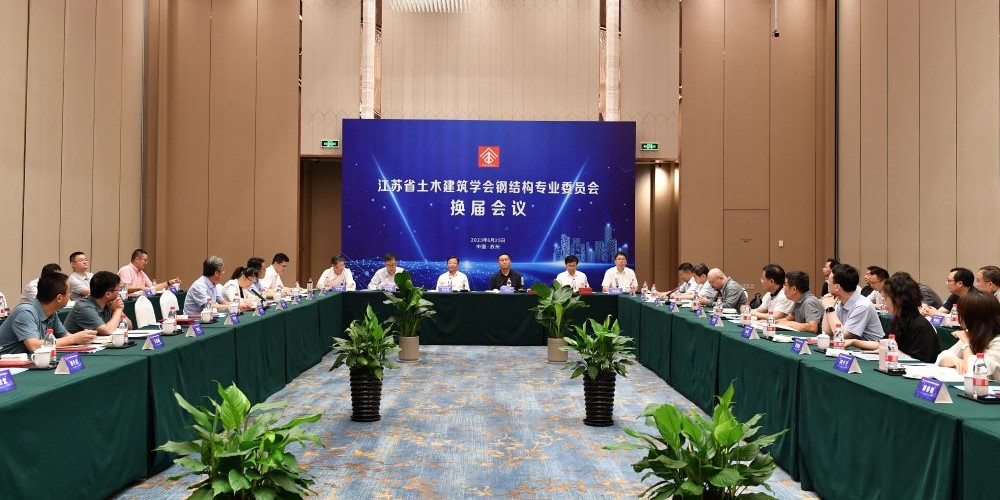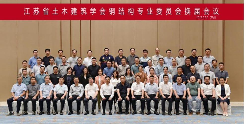 江苏省土木建筑学会第五届钢结构专业委员会换届全体委员会议于2023年6月25日下午在苏州市中惠铂尔曼大酒店举行,苏州科技大学党委书记姜朋明、江苏省土木建筑学会副理事长兼秘书长王华、第四届钢结构专业委员会主任委员南京工业大学教授董军,钢结构专业委员会委员共计60余人出席会议。会议由第四届钢结构专业委员会副主任委员南京金基控股(集团)有限公司夏长春主持。