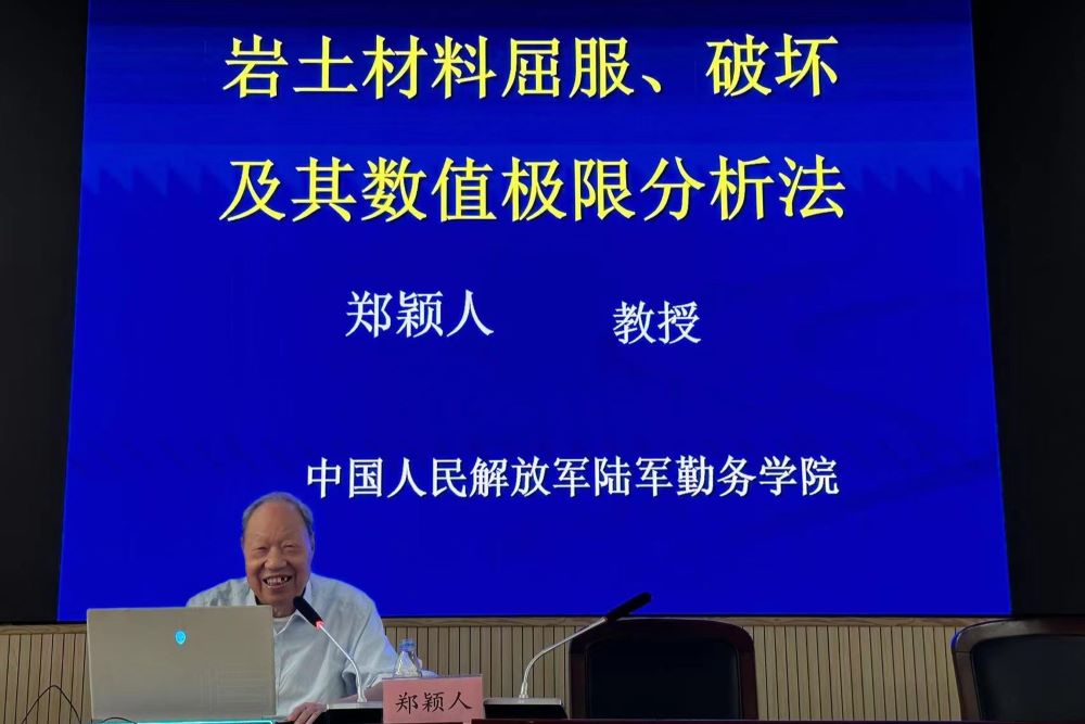作者:张鑫蕊、陆勇 图片作者:杨越群 发布日期:2023-07-05 浏览:次6月29日,轻小说 邀请到中国人民解放军陆军勤务学院郑颖人院士,为轻小说 师生做了题为《岩土材料屈服破坏及其数值极限分析方法》的报告。校党委书记姜朋明出席并主持了本次院士报告会,轻小说 书记刘志强、常务副院长赵宝成、副书记兼副院长刘建峰、副院长陈鑫以及岩土工程方向全体青年教师、研究生参加了本次报告会,另有来自周边部分高校(苏州大学、江南大学、常州大学、江苏科技大学)的多位教师参加了本次报告会。