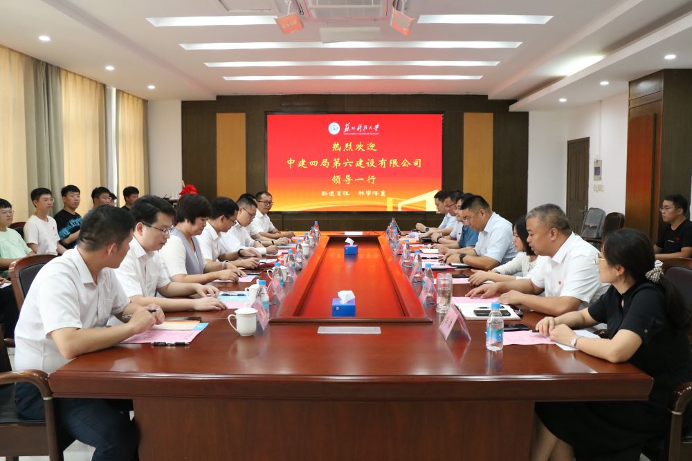 张承祖对李永旺一行的到来表示热烈欢迎,对中建四局第六建设有限公司长期以来在人才培养、毕业生就业、学科建设、科学研究等方面给予的大力支持表示感谢,就学校基本情况、2024届毕业生生源情况及2023年秋季招聘活动安排进行详细介绍,期望双方进一步构建人才共育、成果共享的校企合作机制。李永旺充分认可了学校的人才培养质量,介绍了公司近几年的发展情况和业务板块,期望双方继续充分发挥各自优势,不断推进产教融合,持续拓展校企合作广度和深度,助力校方的高质量建设发展。