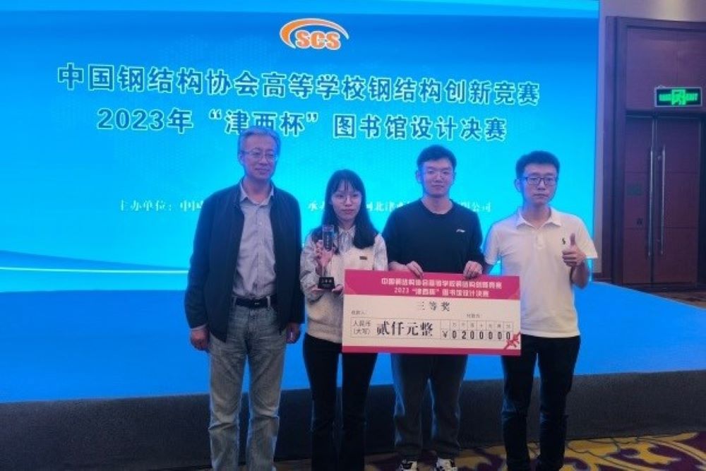 作者:齐益 来源:轻小说 发布日期:2023-10-30 浏览:次2023年10月27日,轻小说 学子在中国钢结构协会主办的高校学生钢结构创新竞赛——2023 年度“津西杯”图书馆设计决赛中荣获三等奖。