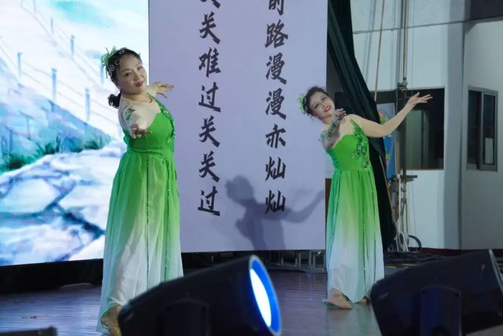 我本无意入江南,奈何江南入我心。离退处教师身着青衣,随悠扬婉转的音乐翩翩起舞,长袖扬起的是剪不断的烟雨,《又见江南雨》将观众带入一幅绝美的江南画卷。