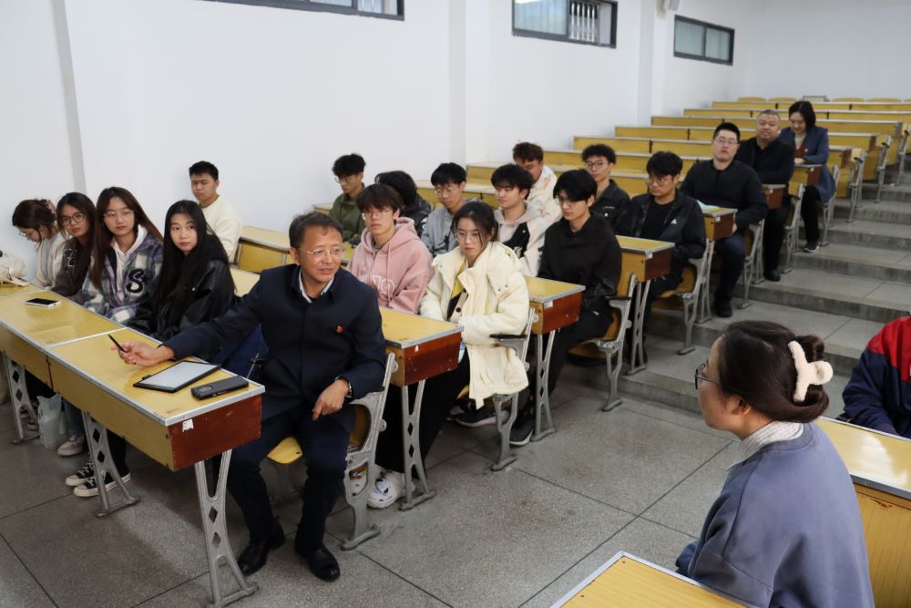 在江枫校区J5教室,姜朋明认真听取了班长的班级情况汇报,详细询问了同学们的思想、学习和生活情况,认真听取了学生们对课堂教学、校园环境、后勤服务等方面的意见建议,同时勉励学生们珍惜时光,多参加校园文化活动,认真学习专业知识,全面提升综合能力,努力成长为高素质创新性应用型人才。同时他还结合个人经历,与同学们一起畅谈未来规划。