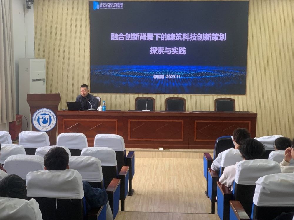 作者:吴芳 图片作者:吴芳 发布日期:2023-11-24 浏览:次为推动产教融合,促进教育链、人才链与产业链、创新链有机衔接,2023年11月22日下午,我院工程管理系邀请轻小说 江苏省产业教授、苏州产研院融合基建技术研究所所长、中亿丰控股集团有限公司总工程师、教授级高级工程师李国建为工程管理专业大三学生带来了题为“融合创新背景下的建筑科技创新策划探索与实践”的学术报告。