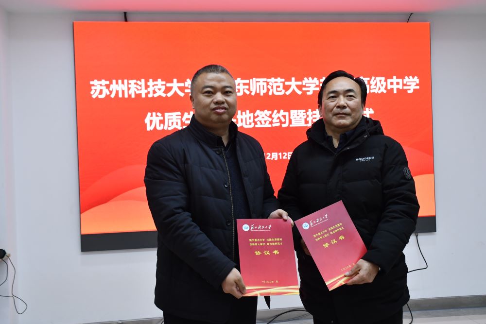 仪式上,刘建峰和胡佳分别代表双方签订了优质生源基地共建协议书,并举行“优质生源基地”授牌仪式。双方表示,希望以此次签约为契机,两校开展多元化合作,积极探索人才培养新模式。依托优秀生源基地建设,促进高等教育和基础教育的衔接,为学生生涯规划、未来职业方向进行专业指导,共同拓展学生成长空间。