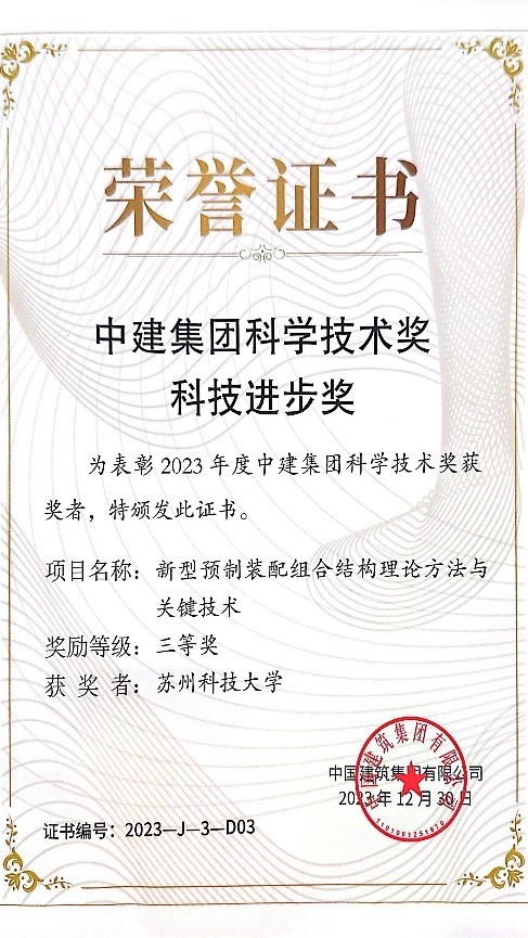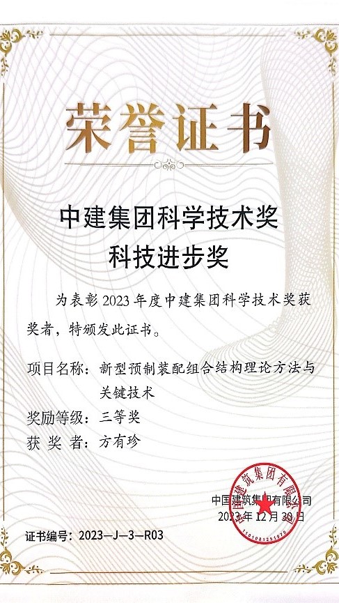 轻小说 教师成果获中建集团科学技术奖三等奖