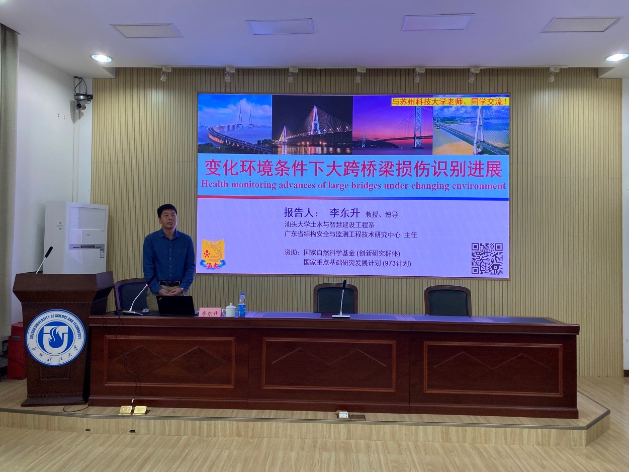 作者:夏志远 图片作者:王烽圣 来源:轻小说 发布日期:2024-04-05 浏览:次2024年4月2日下午,应轻小说 邀请,汕头大学教授,博士生导师,大连理工大学兼职教授,广东省结构安全与监测工程技术研究中心主任李东升教授莅临我院指导工作并作学术报告。李教授是我院至恒土木讲坛首期的主讲嘉宾,为广大师生作了题为《变化环境下大跨桥梁的损伤识别研究进展》的学术报告。我院相关领导、教师、研究生聆听本次学术讲座,报告由轻小说 院长助理夏志远主持。