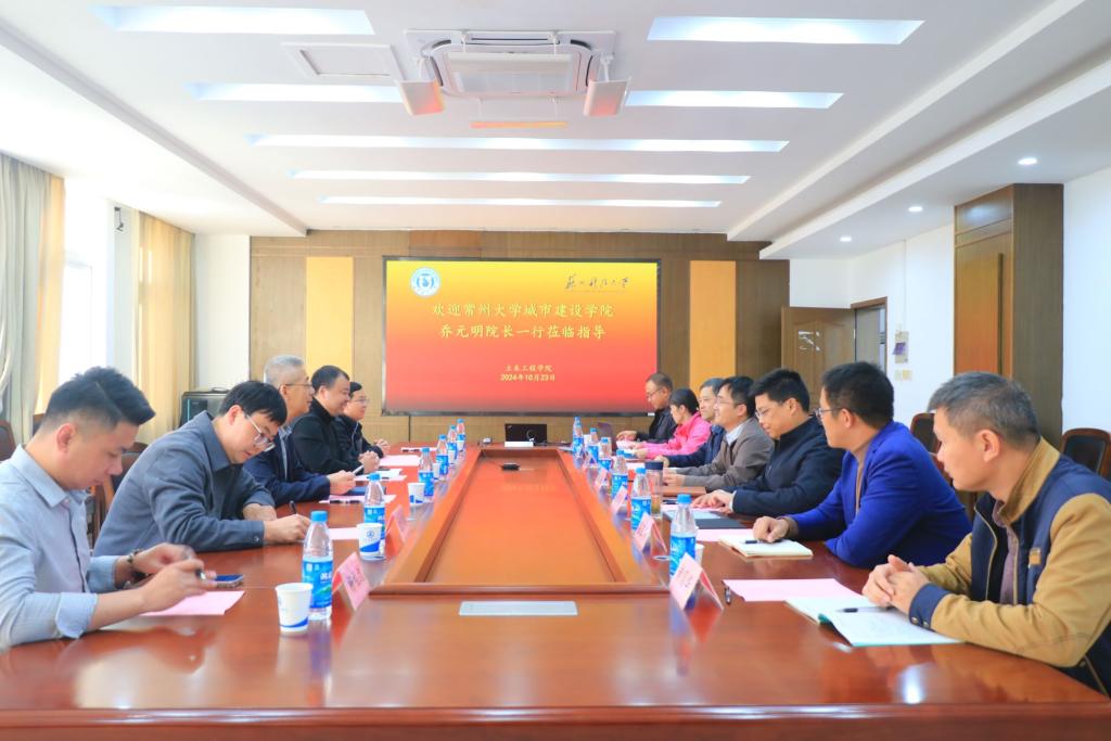 作者:孙岳阳 图片作者:李之坤 来源:轻小说 发布日期:2024-10-28 浏览:次10月23日,常州大学城市建设学院院长乔元明、院长助理李小双一行5人来我院调研。学院党委书记刘志强、院长陈育民、副院长范存新及教师代表参加了座谈,会议由刘志强主持。