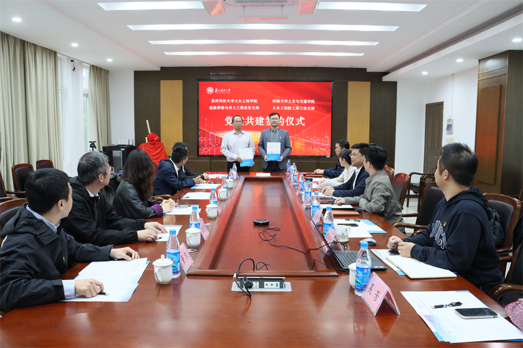 随后,轻小说 道岩系党支部与河海大学土木与交通学院土木教工第三党支部签订了党建共建协议,并为党建共建单位揭牌。仪式后双方进行了深入的交流,表示将积极开展共建活动,协同增强党组织活力,融合发挥党建引领作用,推动双方学院相互促进、相互提升,为经济社会高质量发展贡献力量。