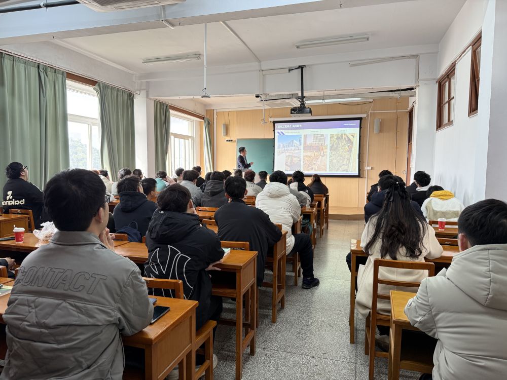 本次活动邀请的主讲专家曹青业近几年负责了苏州地区百余项深大基坑设计项目,工程经验十分丰富。课堂伊始,周爱兆给大家介绍了曹青业的工作履历,并对他表示热烈欢迎。随后,曹青业以“基坑支护设计、施工及案例分享”为主题,结合苏州市典型的基坑工程,深度解读基坑工程的复杂性,并结合真实案例剖析基坑支护设计及施工要点。他用丰富的工程经验告诉同学们,基坑工程具有高风险性、不确定性等特点,而岩土工程师的职责就是在满足施工可行性的前提下,在安全与经济之间寻找平衡点,提供最优的设计方案。 课堂上,曹青业还围绕同学们关心的就业方向、就业市场作了大致介绍,并针对就业岗位的类型、各岗位的技能要求和职业发展路径、如何提升自身竞争力等问题做了详细介绍。