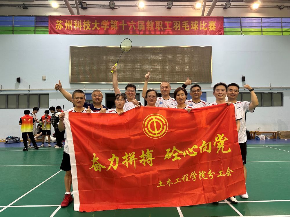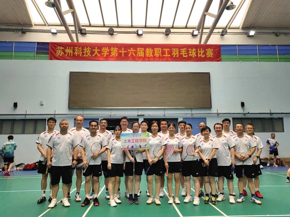 作者:袁晓静 图片作者:袁晓静 来源:轻小说 发布日期:2025-04-28 浏览:次2025年4月25日,苏州科技大学第十六届教职工羽毛球比赛圆满落幕。本届赛事由校工会主办,全校30余支教职工队伍参赛。轻小说 派出的一队、二队,凭借顽强拼搏的精神和默契协作的团队表现,双双实现历史性突破:土木一队勇夺季军,二队首次挺进16强,展现了土木人锐意进取、昂扬向上的精神风貌。