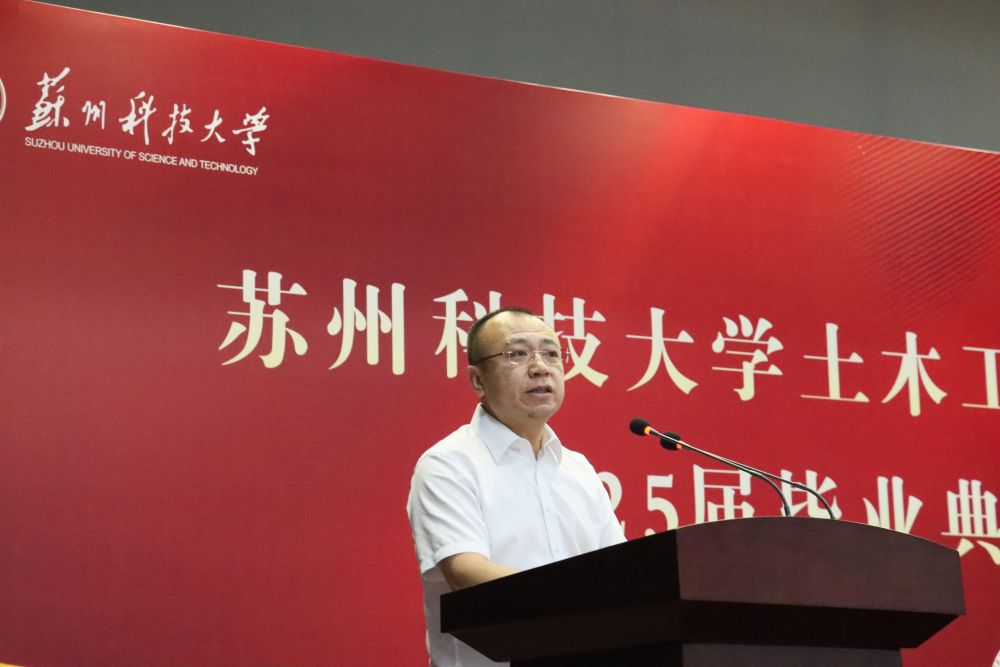 陈育民深情寄语毕业生:在机遇良好时,努力做成绩斐然的人;在起步平凡时,坚持做终身学习的人;无论身处何境,都要做对社会有用的人。他期望土木学子能够永葆家国情怀,坚守工匠精神,勇于开拓创新,恪守职业操守,在祖国建设的广阔天地中建功立业,并强调苏科大土木学院永远是毕业生的精神家园和坚强后盾。