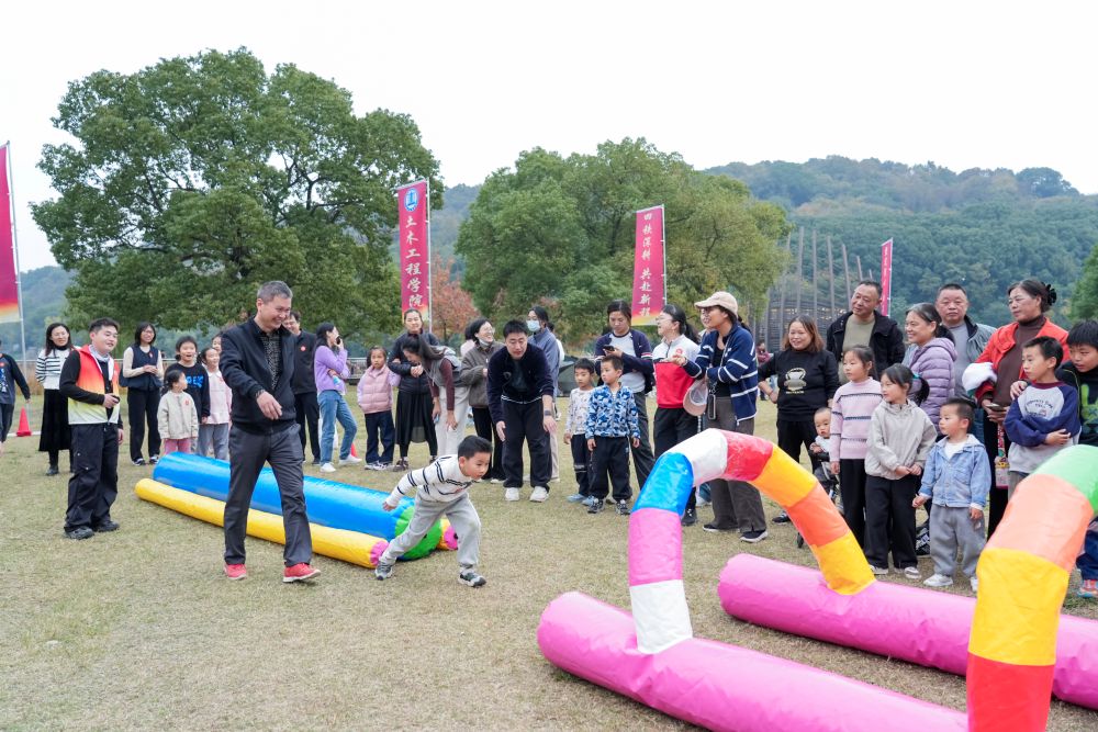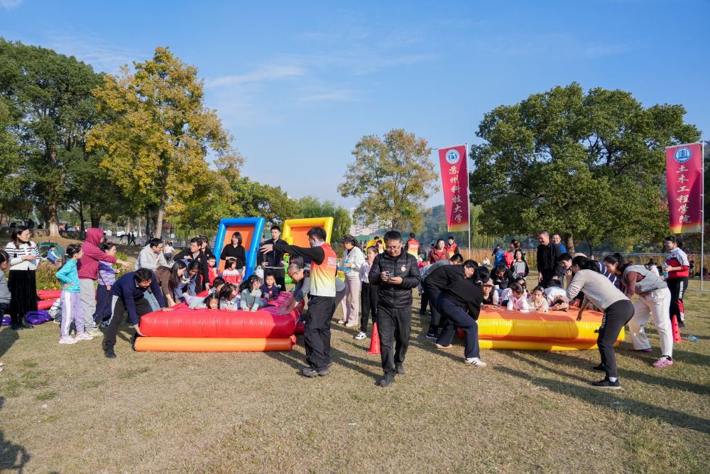 运动会在专业主持人的激情引导下渐入佳境。“趣味毛毛虫”比赛中,家长与孩子协力前进,萌趣画面引发阵阵欢笑;“有求必应”环节,一个个天马行空的指令在亲密无间的配合中顺利完成;“同舟共济”的踏板上前行的不仅是脚步,更是家人间的信任扶持;而“滚滚战车”的巨型履带里,此起彼伏的加油声将比赛推向高潮。新颖的“俄罗斯方块”游戏将经典游戏搬进现实,大小玩家们奔跑传递积木的模样宛如跃动的音符;“趣味闯关赛”中设置的平衡力、反应力挑战,让爸爸妈妈们重拾童真;压轴项目“拔河比赛”更是上演了力量与团结的盛宴,绳缆两端紧绷的是力量,串联的是代代相传的土木精神。