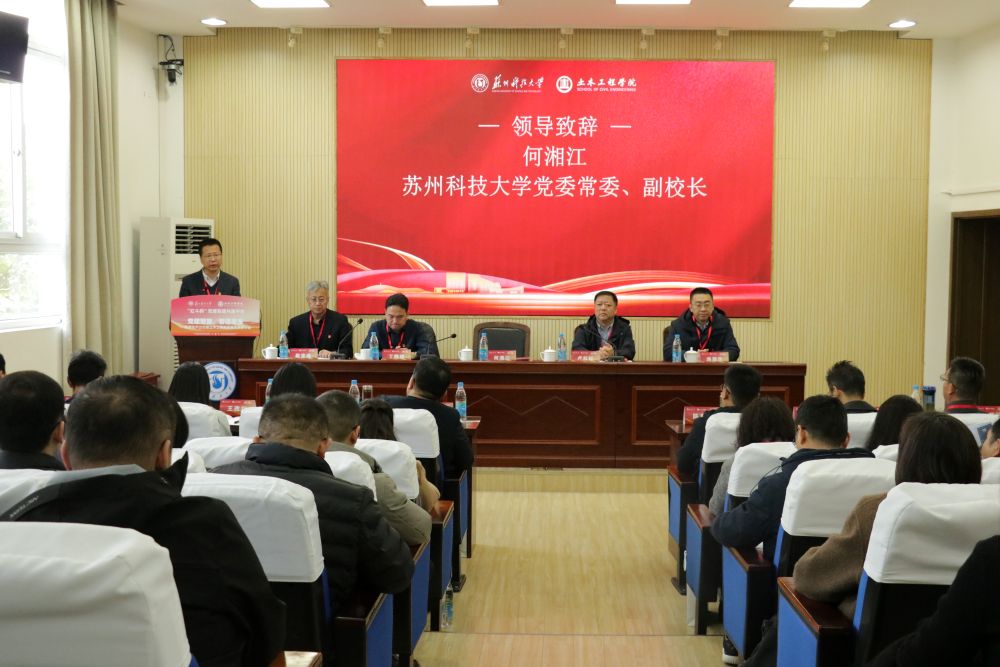 何湘江介绍了学校的办学底蕴与发展成效。他指出,苏州科技大学作为省部共建高校,坚持以高质量党建引领事业高质量发展,基层党建成果显著,学科实力突出,深度参与苏州及长三角地区多项重点工程建设。此次研讨会是推动党建与土木工程学科深度融合的重要契机,学校将以此凝聚发展共识,构建党建引领、产教融合新生态,为土木工程领域新质生产力发展贡献高校智慧。