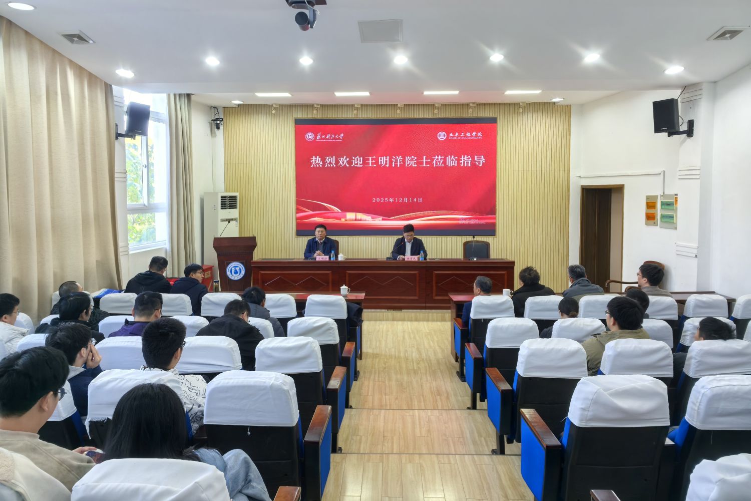 作者:郭凡 图片作者:郭凡 来源:轻小说 发布日期:2025-12-16 浏览:次2025年12月14日,苏州科技大学举办土木工程学科高质量发展系列活动。我国工程防护领域著名专家、中国工程院院士王明洋应邀来校,作“现代战争下关键基础设施防护若干理论问题”的学术报告,并出席土木工程学科高质量发展研讨会。校党委书记姜朋明,党委常委、副校长唐柏鉴等参加活动。
