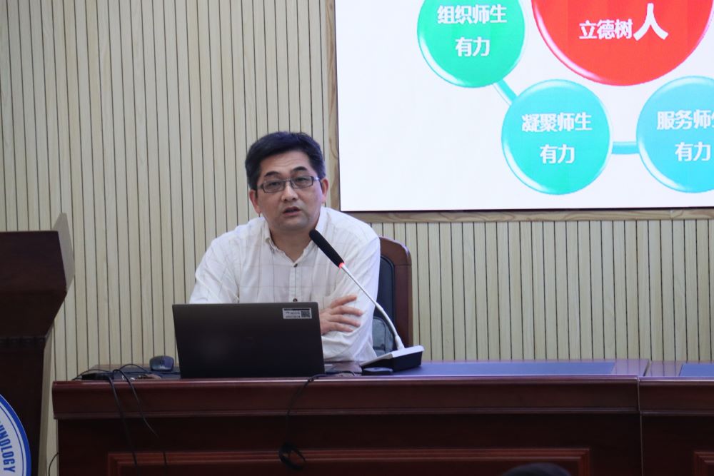陆勇老师讲述了我院教师在南海岛礁建设、深海能源开发、西部交通建设、古建园林保护等重点领域攻克层层难关、作出积极贡献的事迹,激励学生要秉持工匠精神,积极服务国家战略、服务人民需要。