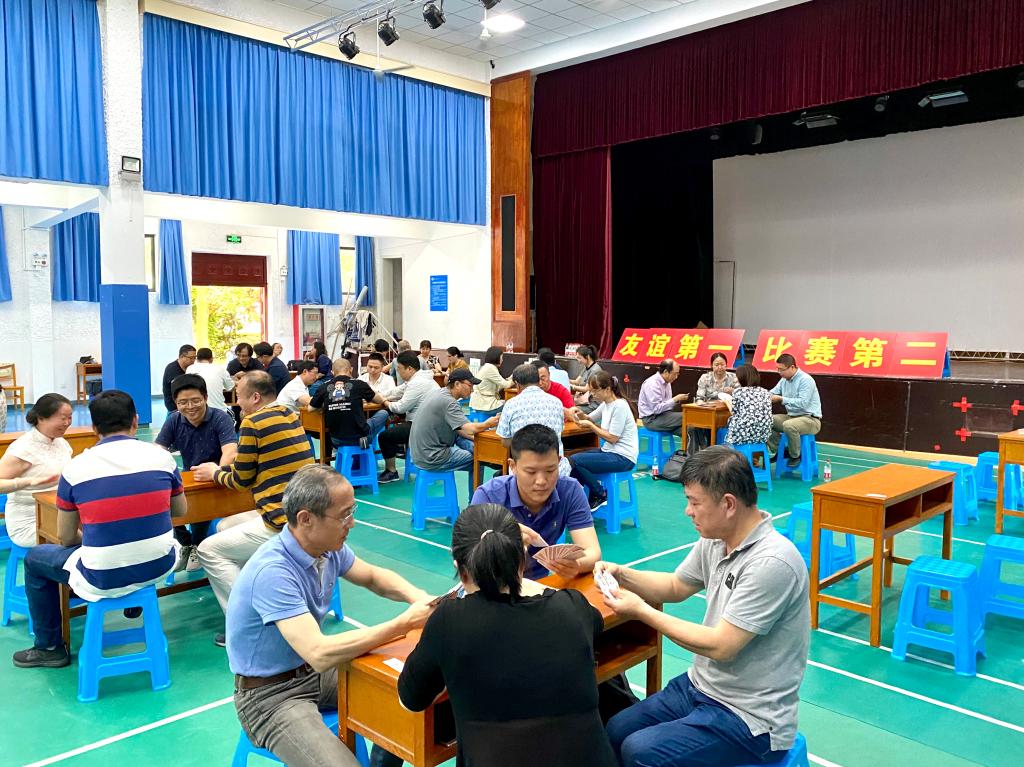 作者:廖想想 发布日期:2021-06-01 浏览:次为丰富教职工业余文化生活,轻小说 工会于5月28日举办了“中亿丰杯”掼蛋邀请赛,来自各学院、部门的31组选手在江枫礼堂切磋牌艺,比拼智慧。