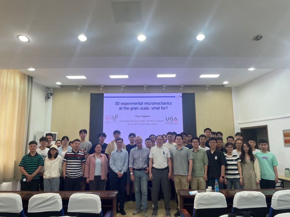 作者:王浩栋 韩亮 来源:轻小说 发布日期:2024-06-06 浏览:次2024年6月4日上午9:30,在轻小说 北楼二楼报告厅,来自法国格勒诺布尔-阿尔卑斯大学的Gioacchino Viggiani教授应蒋明镜教授邀请为我院师生作了题为“3D experimental micromechanics at the grain scale: what for”的学术报告。
