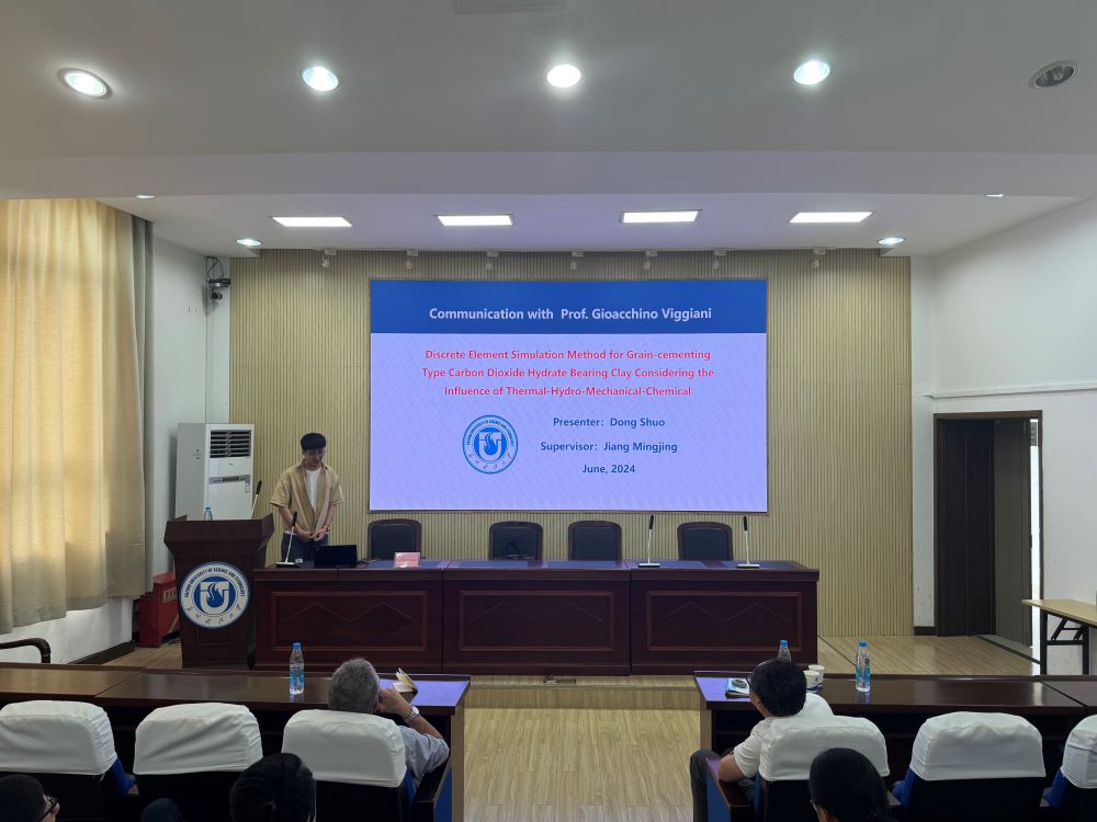 Viggiani教授的报告深入浅出,开拓了大家的学术眼界,师生认真听讲、记录,并就相关问题与Viggiani教授开展深入交流。报告结束后我院董硕等8名研究生向Viggiani教授展示了自己的研究成果,Viggiani教授对每位同学的研究工作进行了详细点评。