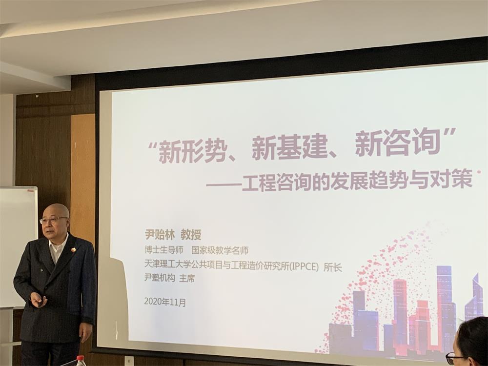 尹贻林教授结合我国建筑业的发展现状和趋势,作了题为“新形势、新基建、新咨询——工程咨询的发展趋势与对策”的精彩学术报告。同时,他结合自己的教育经历,对研究生培养、学术研究提出了建议。与会师生针对我国工程咨询的发展、项目管理等问题进行了热烈的研讨。