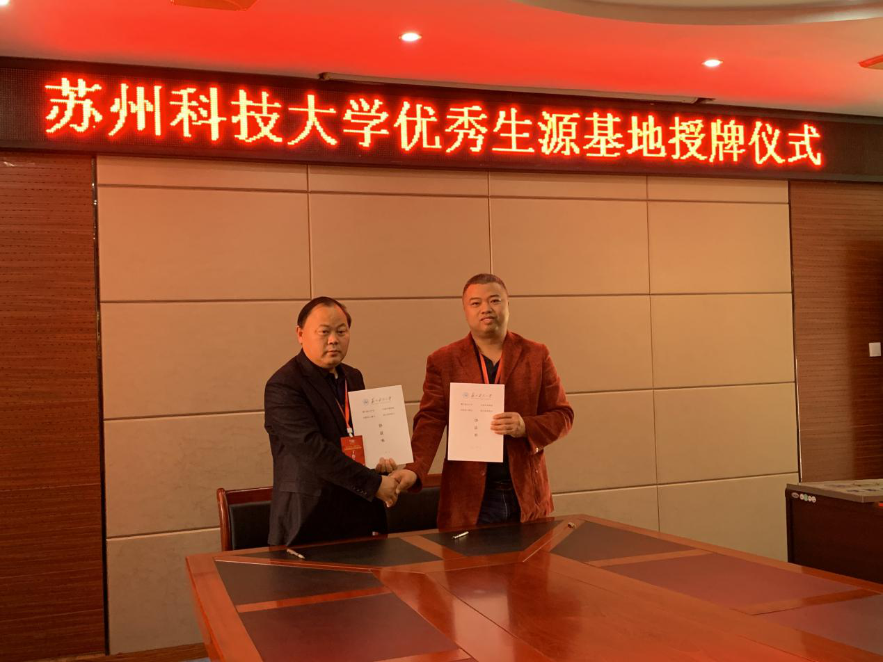 11月16日,轻小说 与江苏省泗洪中学签订苏州科技大学“优质生源基地”合作协议,并举行了基地授牌仪式。学校宿迁地区招生宣传负责人、轻小说 党委副书记兼副院长刘建峰,江苏省泗洪中学副校长陈庚出席签约授牌仪式。