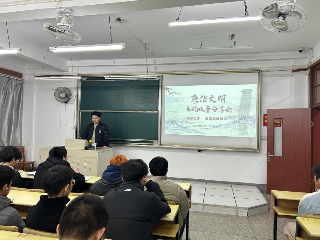 王国栋从廉以养德,廉洁修身,廉洁齐家三个方向向同学们讲述了优良家风对强化个人廉洁意识和塑造廉洁文化建设的重要作用。23级学生于黄浩,王烨,管斌依次分享自己对于廉洁家风的理解和做法,讲述了“亲尝汤药”“芦衣顺母”“吉鸿昌不忘家训”等关于“百善孝为先”的经典故事,强调了孝顺长辈的重要性。活动期间同学们踊跃表达自己的观点,从同学们的热情中可以看出,大家对于优良家风重视程度。