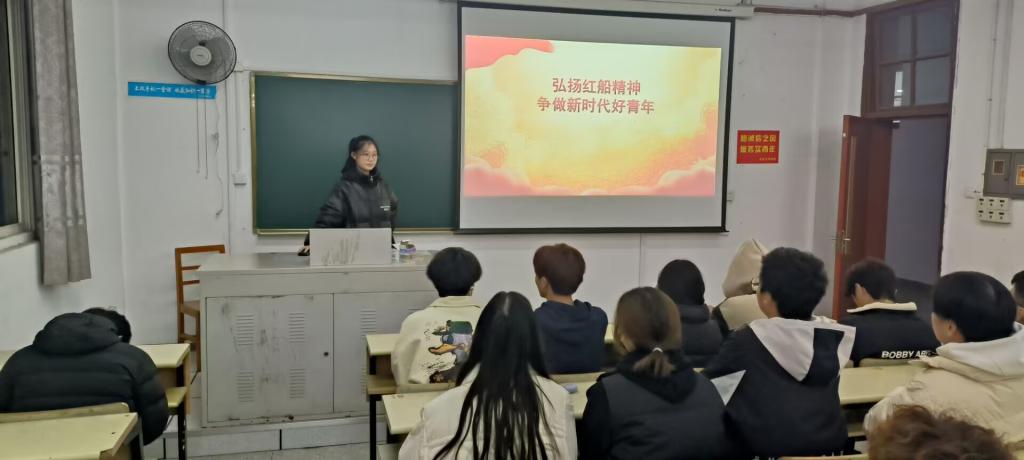 部长从历史背景讲起,带领同学们了解、感受、学习“红船精神”,并通过生动的故事和鲜活的例子为大家讲述“红船精神”的内涵,从一叶红船到巍巍巨轮,从一条小船到一个大党,大家在红色血脉中凝聚奋进力量。接着,同学们围坐在一起将自己对“红船精神”的理解及感悟进行交流,进一步砥砺了理想信念,坚守了初心使命,将“红船精神”根植于心。