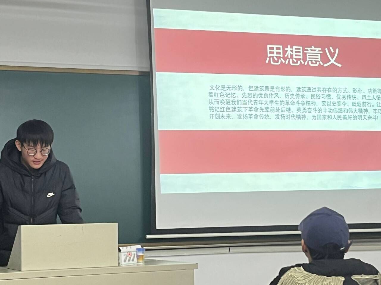 活动主要分为两部分,首先,王老师结合本次“鉴红色建筑,颂革命精神”的主题讲述了思想政治教育对于大学生的重要性,鼓励同学们高举团旗跟党走,担负起时代重任,将此精神发扬到学习和部门工作中去,不断提升自我价值;第二部分,土协部长高晟斌同学带领大家了解了北京大学红楼和中国人民革命军事博物馆两座红色建筑,并向大家阐释了建筑通过其存在的方式、形态、功能等承载着红色的记忆,记载着历史传承、民俗习惯和优秀传统等精神文化。