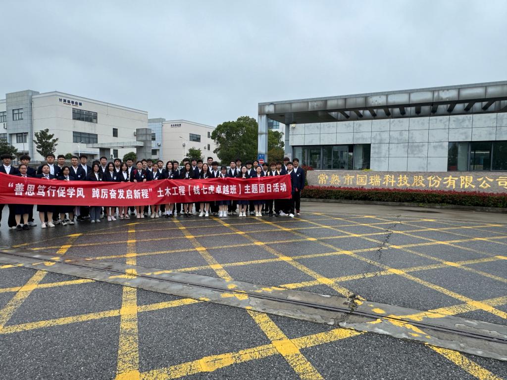 作者:郭凡 发布日期:2024-10-28 浏览:次为深化校企合作,积极推进学风建设,增强班级凝聚力,2024年10月26日,轻小说 2024级“钱七虎卓越班”全体成员前往常熟市国瑞科技股份有限公司开展“善思笃行促学风,踔厉奋发启新程”主题团日活动。