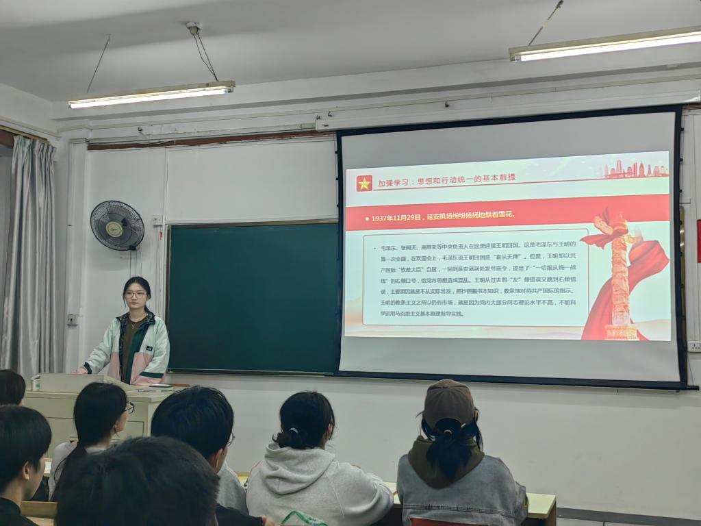 晚上9点整,“馨枫”青年志愿者协会全体部员在二教205开展主题为“延安整风运动与全党思想和行动的统一”的活动。首先,向部员们讲述延安运动是共产党历史上第一次大规模的整风运动,这段历史不仅是我们党光辉历史的见证,更是激励我们不断前进的动力源泉。通过这次整风运动,中国共产党成功解决了党存在的各种问题,进一步统一了思想。延安整风开辟了以思想理论教育推动自我革命的新路径、新模式。我们通过这次主题活动,让部员们深入了解这段历史,更好地传承和弘扬中国共产党的优良传统和精神风貌。
