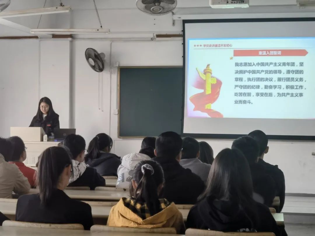 本次专题组织生活会共分为五个部分:一、唱团歌;二、深入学习习近平总书记“七一”重要讲话精神;三、学习《中国共产主义青年团章程》的第一章“团员”部分内容;四、团员评议环节;五、重温入团誓词。