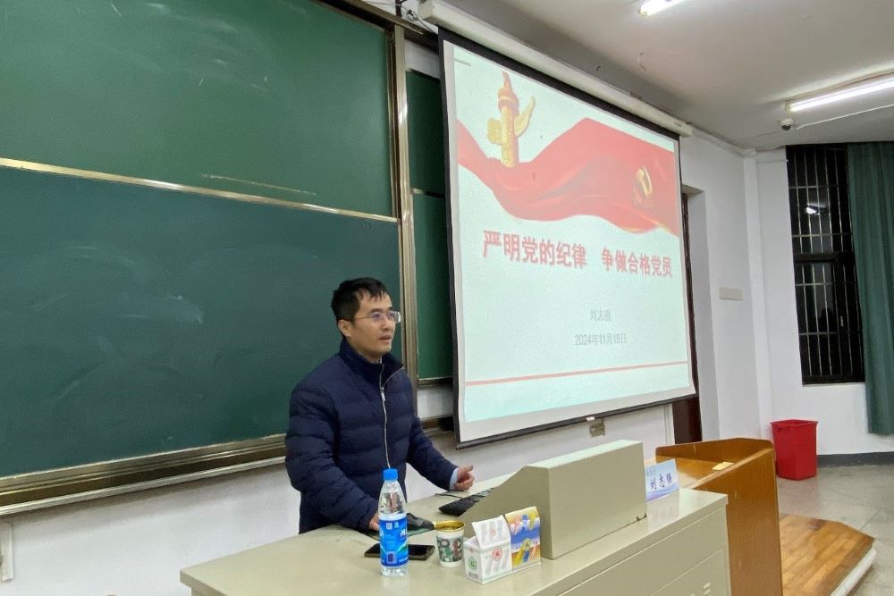 刘志强从党的二十大报告关于全面从严治党、严明党的纪律、严守制度红线等方面,深刻阐述了党的纪律基本含义、党的六大纪律及具体表现,引导学生党员们加强党性锻炼,提高党性觉悟,严守党纪法规,坚定理想信念。最后,刘志强号召同学们立大志、明大德、成大才、担大任,以聪明才智贡献国家,以开拓进取服务社会,谱写更为动人的新时代青春之歌!