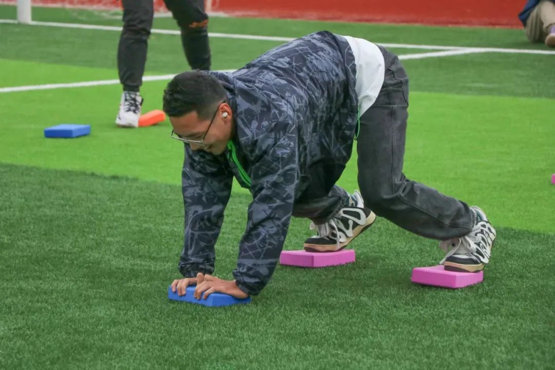 作者:李之坤 发布日期:2022-11-20 浏览:次为充分展示青年学生积极向上的健康心态和精神面貌,丰富学生们的课余生活,促进同学情谊,11月20日下午,我院于江枫足球场举办“同舍同进”新生趣味运动会。此次运动会有六个项目,分别为愤怒的沙包、球球大作战、摸石过河、战车履带、一圈到底和趣味保龄球。