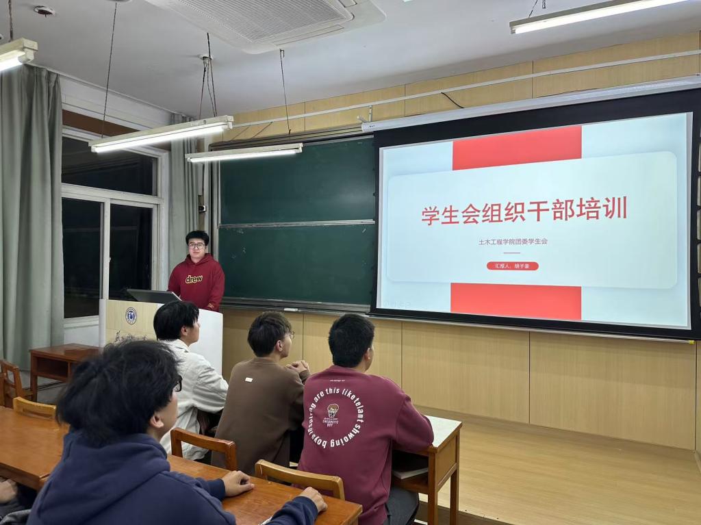 发布日期:2024-11-19 浏览:次2024年11月18日,学生会主席胡子豪主持的团学组织干部培训会在二教224教室顺利召开。本次培训旨在加强团学骨干的引领作用,扎实推进团学组织的日常管理工作,以更好地服务学校发展大局。