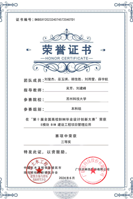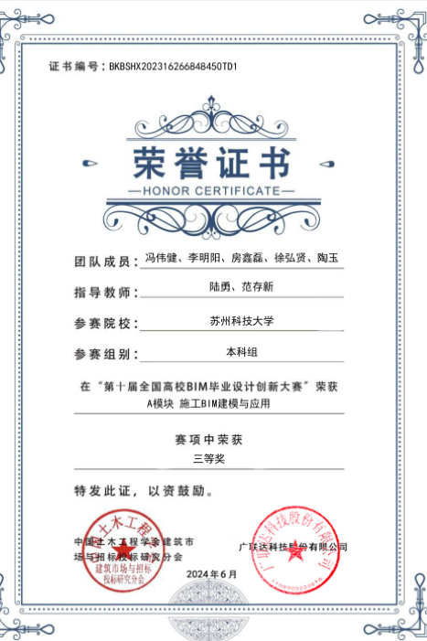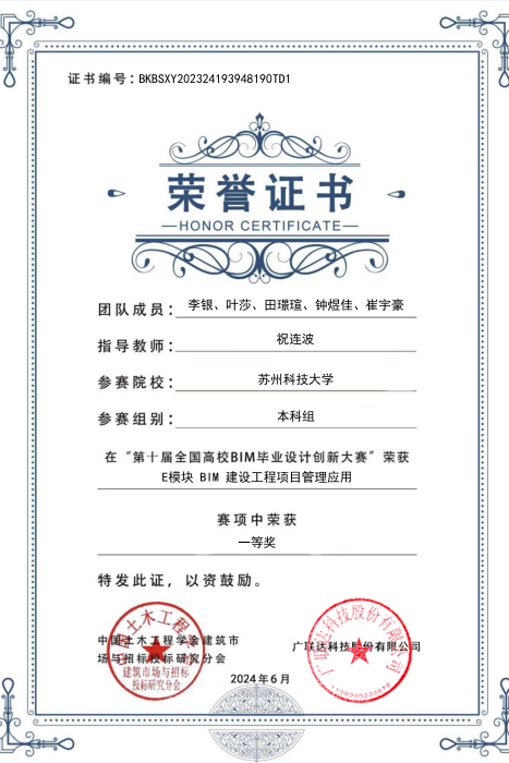 全国高校BIM毕业设计创新大赛是教育部全国普通高校学科竞赛A类赛事,也是轻小说 品牌学科竞赛,含金量和社会认可度极高。大赛由中国土木工程学会建筑市场与招标投标研究分会、广联达科技股份有限公司主办,吸引了全国各地高校的众多优秀团队线上参与比赛,自2023年9月启动以来,共计报名665家院校,12000余支团队,参与师生70000余人,最终入围作品3984份,比赛设7个模块,2个赛道,获奖级别为一等奖、二等奖、三等奖,其中轻小说 获一等奖的E模块(校园赛道)全国仅31项。