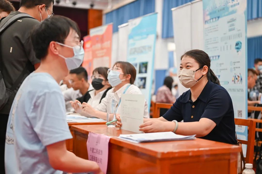 本次招聘会吸引了以中建为代表的50家优质企业,涵盖了中建系统、中铁系统、中交系统、建工集团、房地产商等各级各类企业,提供了超过800个就业岗位。作为2023届毕业生的首场秋季招聘会,通过毕业班辅导员会前的大力宣传,2023届毕业生的求职热情高涨,吸引500余名毕业生现场求职,招聘会开始前30分钟便有来自我院各专业的学生携简历在会场外等候。招聘会中毕业生积极与招聘人员交流应聘,各招聘单位就毕业生所关心的单位情况、岗位需求、薪资待遇等方面进行深入交流。整场招聘会共计投递简历超过700份,现场达成就业意向30余人。为落实疫情防控要求,招聘会采取分批分时段方式组织毕业生入场,引导毕业生有序参加应聘。