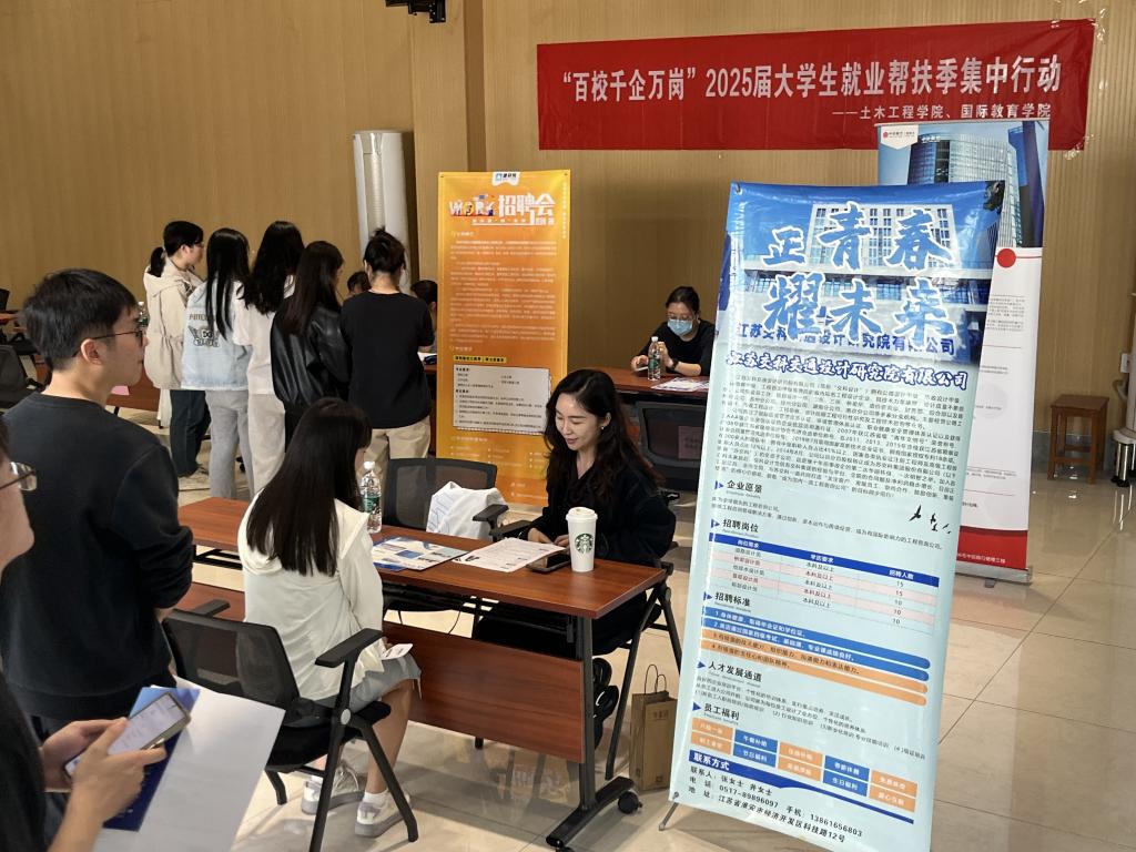 发布日期:2025-05-12 浏览:次为助力2025届毕业生高质量就业,轻小说 与国际教育学院于5月9日下午在江枫校区教工之家联合举办"百校千企万岗"大学生就业帮扶季集中行动。活动吸引多家企业参与,涵盖土木工程、工程管理、设计研究等领域。毕业班辅导员来到招聘会现场指导2025届毕业生求职。