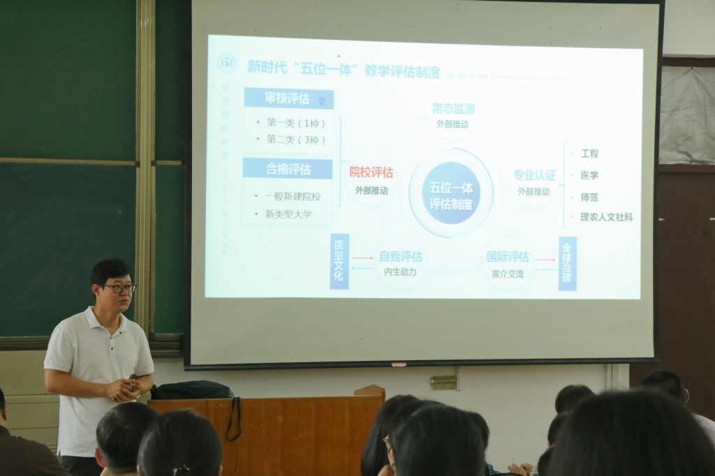 为使全院教职员工更准确地理解在本次审核评估中教学单位的任务,了解学院层面的工作内容,轻小说 还邀请了常熟理工学院电气与自动化工程学院副院长陈景波做了题为《本科教育教学审核评估学院层面工作经验交流》的专题报告,结合常熟理工学院电气与自动化工程学院在审核评估中各个阶段的做法和经验,分享了学院层面的工作流程和重点工作。