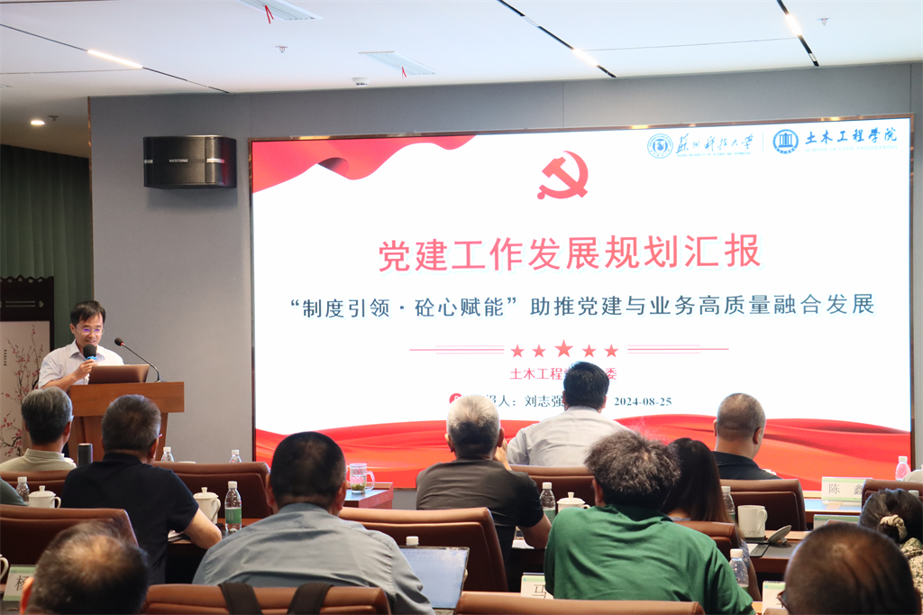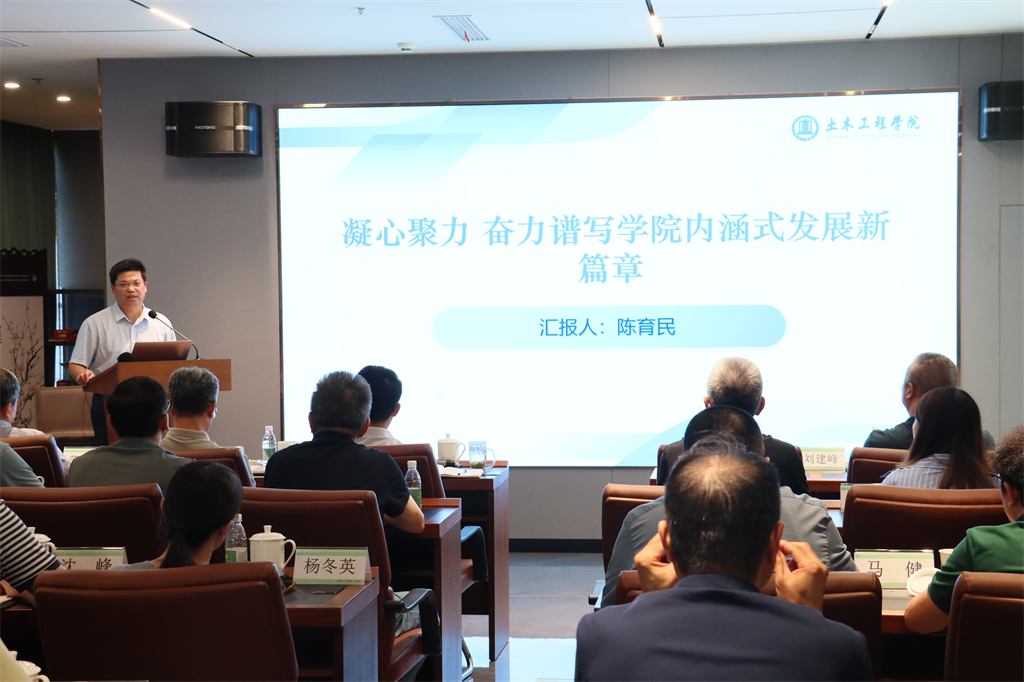 会议第一部分“至恒土木讲堂”由校党委常委、副校长唐柏鉴主持,特邀专家重庆大学教授、中国工程院院士刘汉龙以生物建造体系为主题作学术报告,为学院的高质量发展提供了新思路、新方向。随后,学院各二级单位(部门)负责人进行了工作汇报,汇报从各单位(部门)现状、存在问题、发展目标、发展思路、具体举措等方面展开,并就学院发展提出了切实可行的意见与建议。分组研讨环节中,各小组聚焦“美丽中国建设”在学科建设、创新拔尖人才培养及科研实验平台建设等主题进行了热烈讨论,形成了多项共识与决策,并由各小组代表作总结汇报。学院各条块工作分管院领导分别从党建工作、本科教学、研究生培养、科研产业及实验室、学科建设和学生发展等方面进行汇报交流,展示了学院在各条块工作中的最新进展,分析了亟需解决的问题,提出了解决问题及实现高质量发展目标的具体思路与举措,为学院整体工作指明了方向。